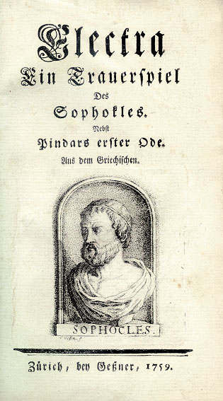 Electra Ein Trauerspiel Des Sophokles. Nebst Pindars erster Ode. Aus dem Griechischen. Mit einer radierten Titelvignette und zwei radierten Schlußvignetten (von S.GESSNER).